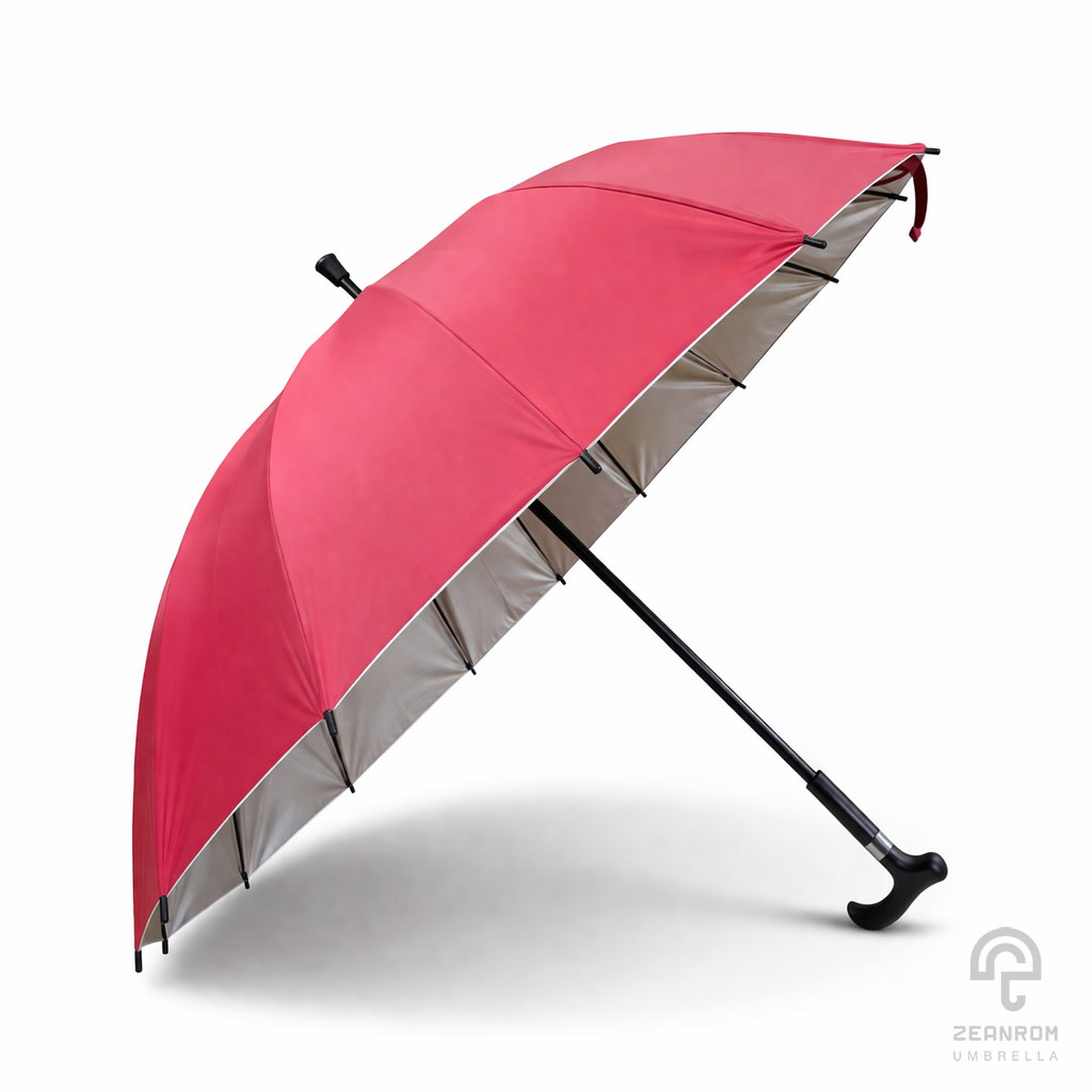 ร่มด้ามไม้เท้า สีแดง 24 นิ้ว(16 ก้าน)